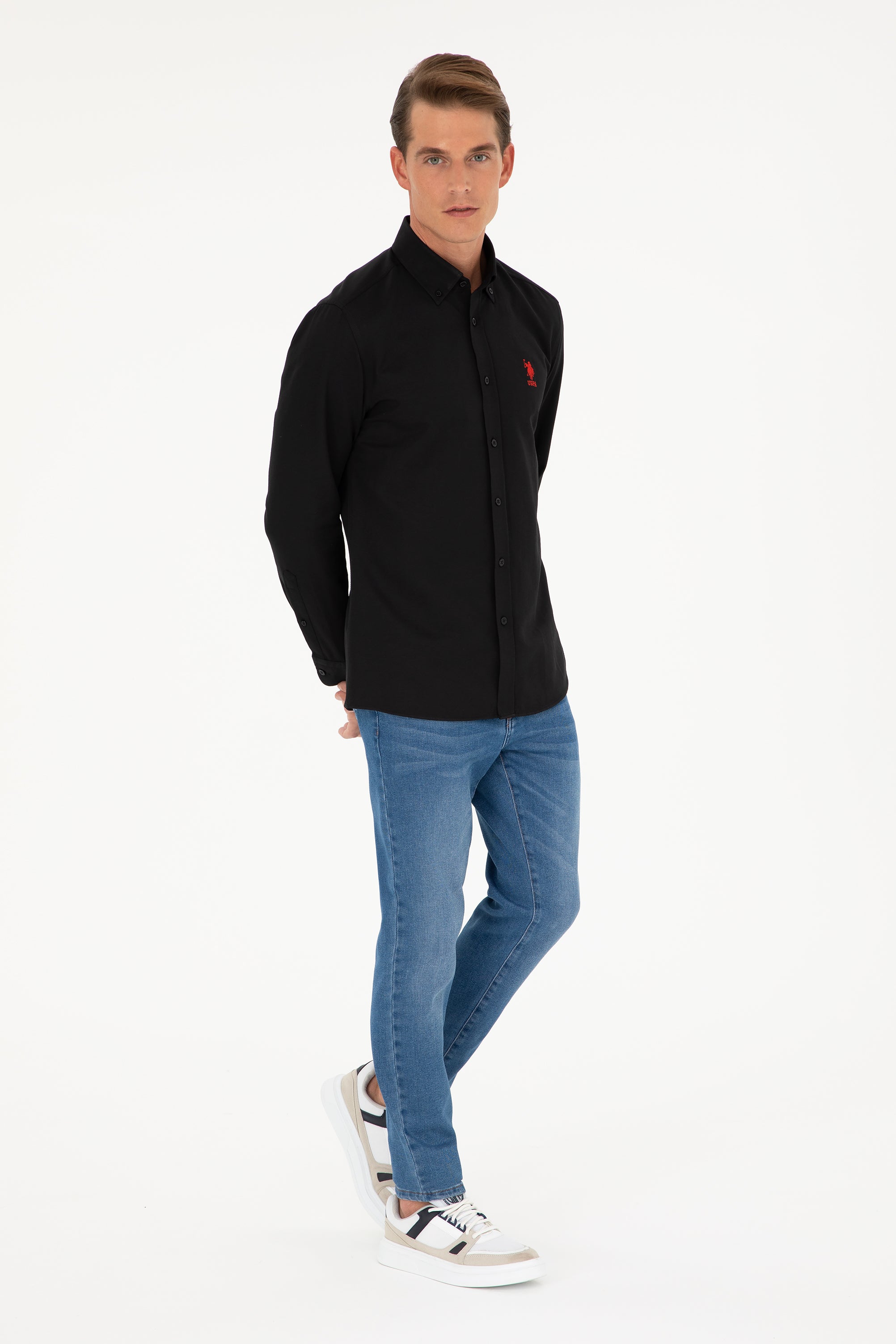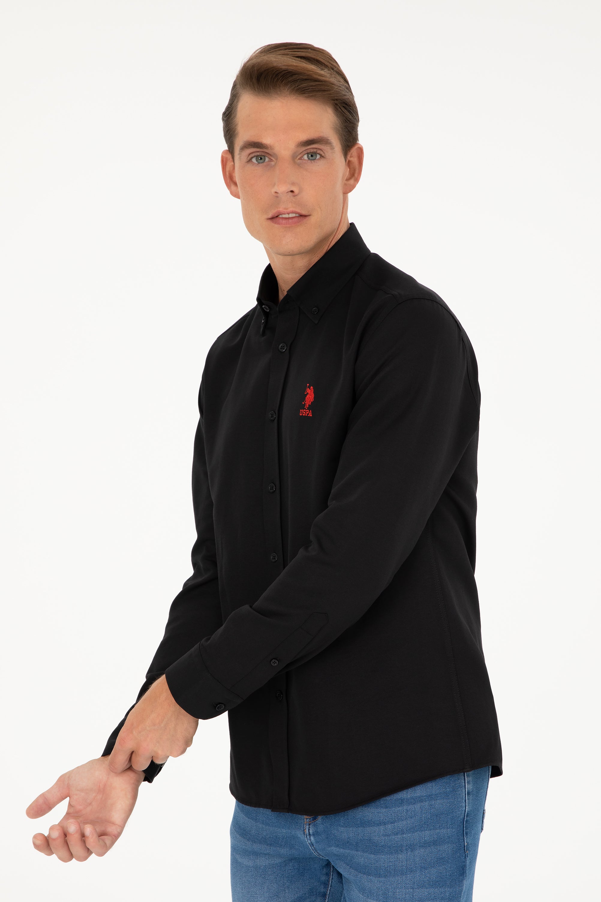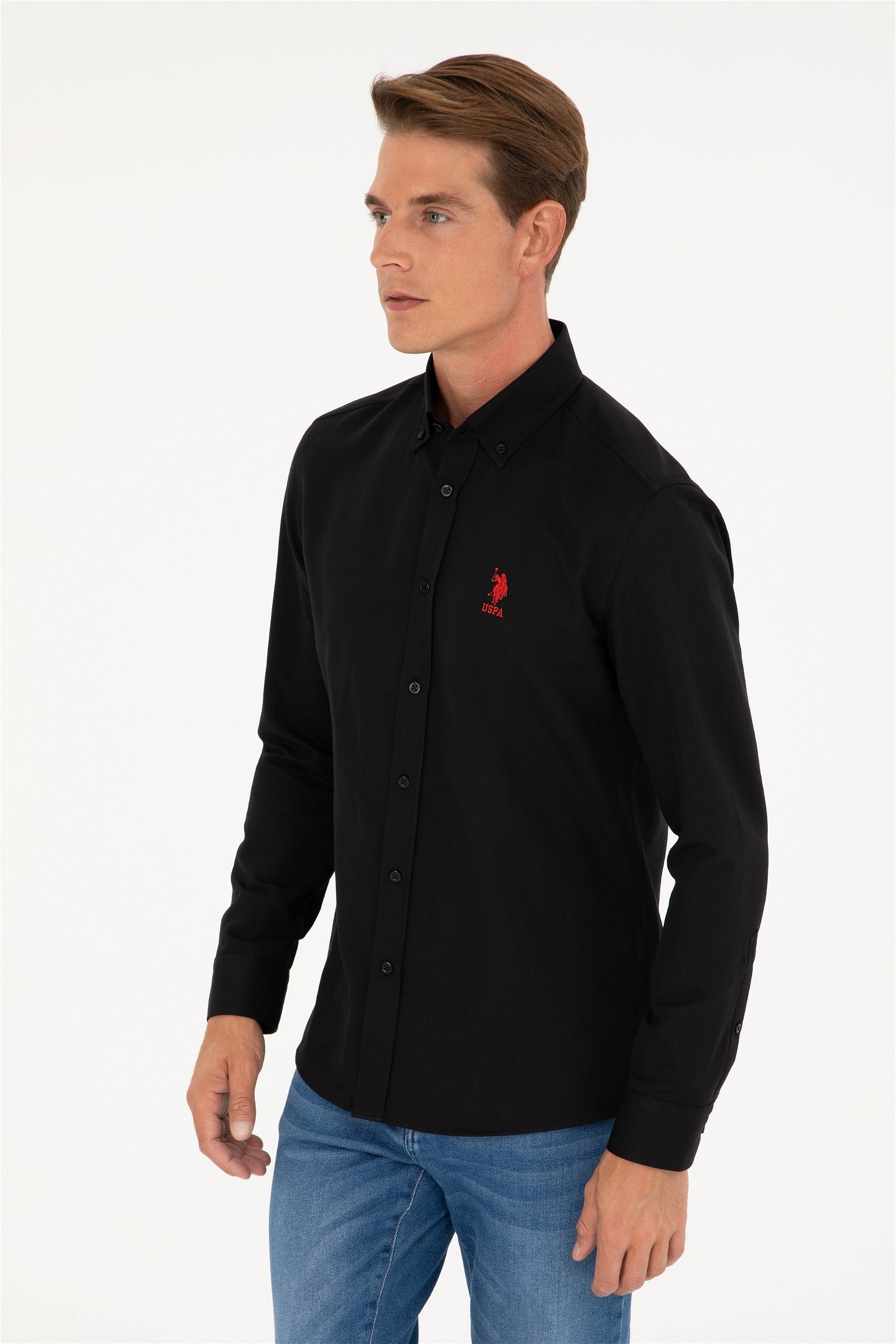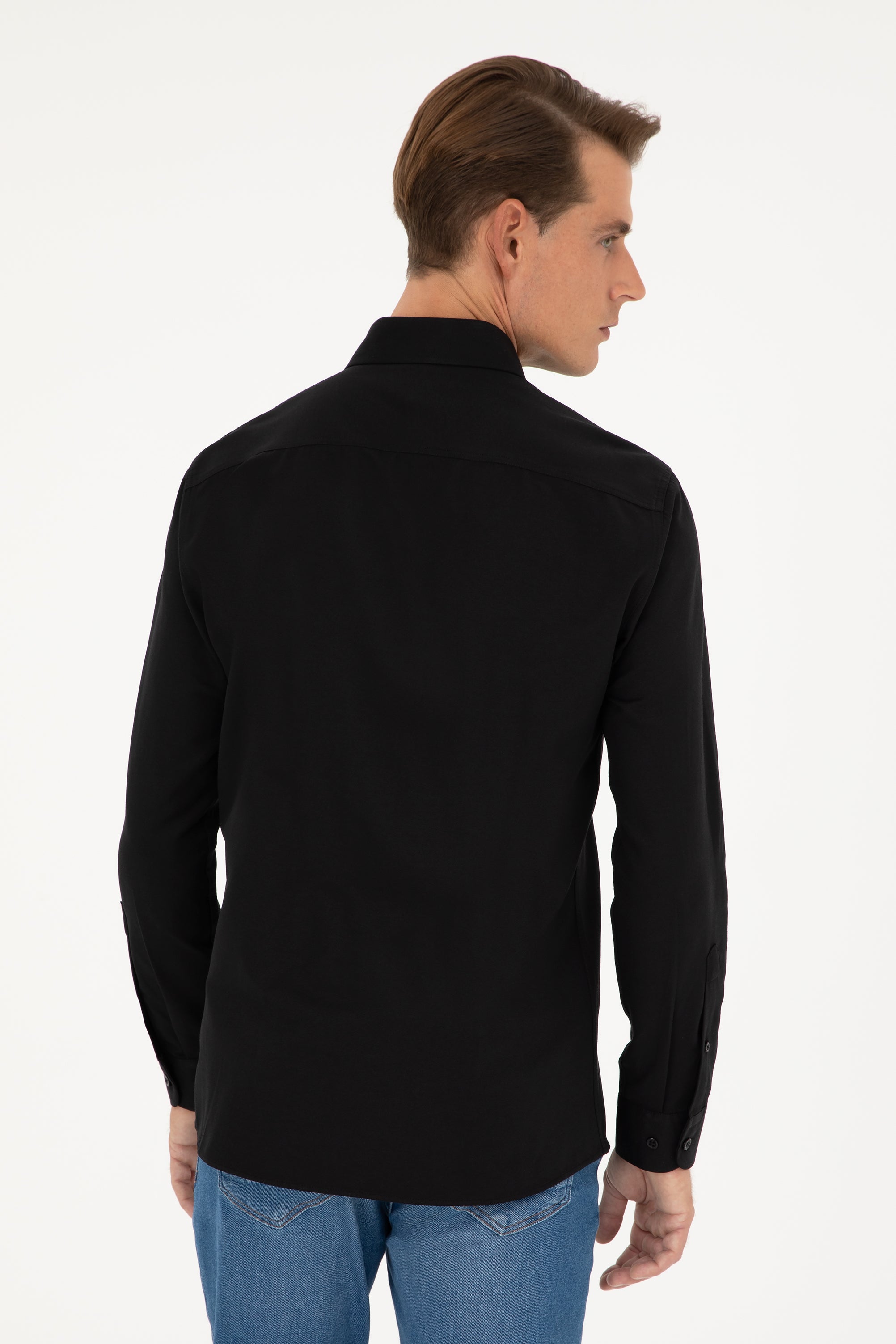 Muška Crna Košulja Dugih Rukava