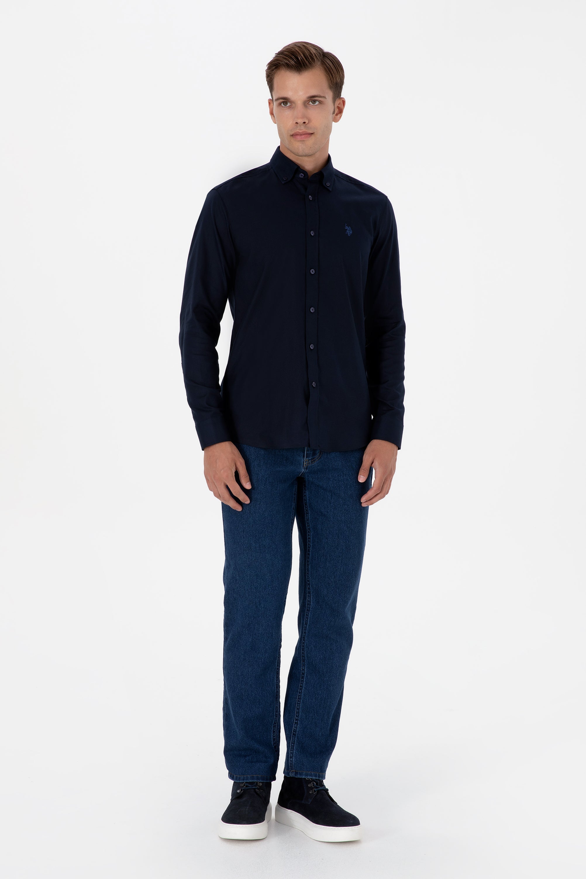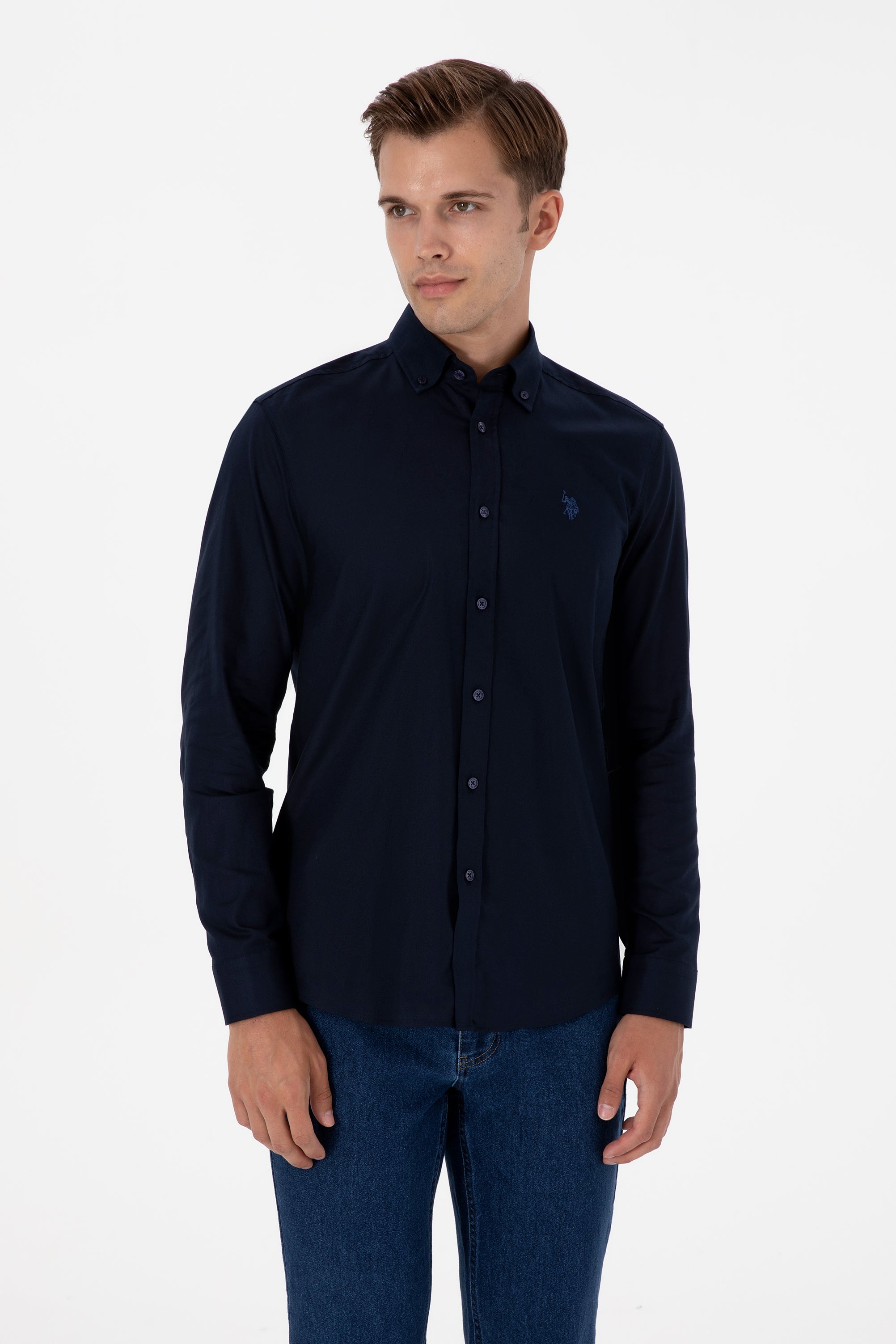 Muška Teget Plava Košulja Dugih Rukava