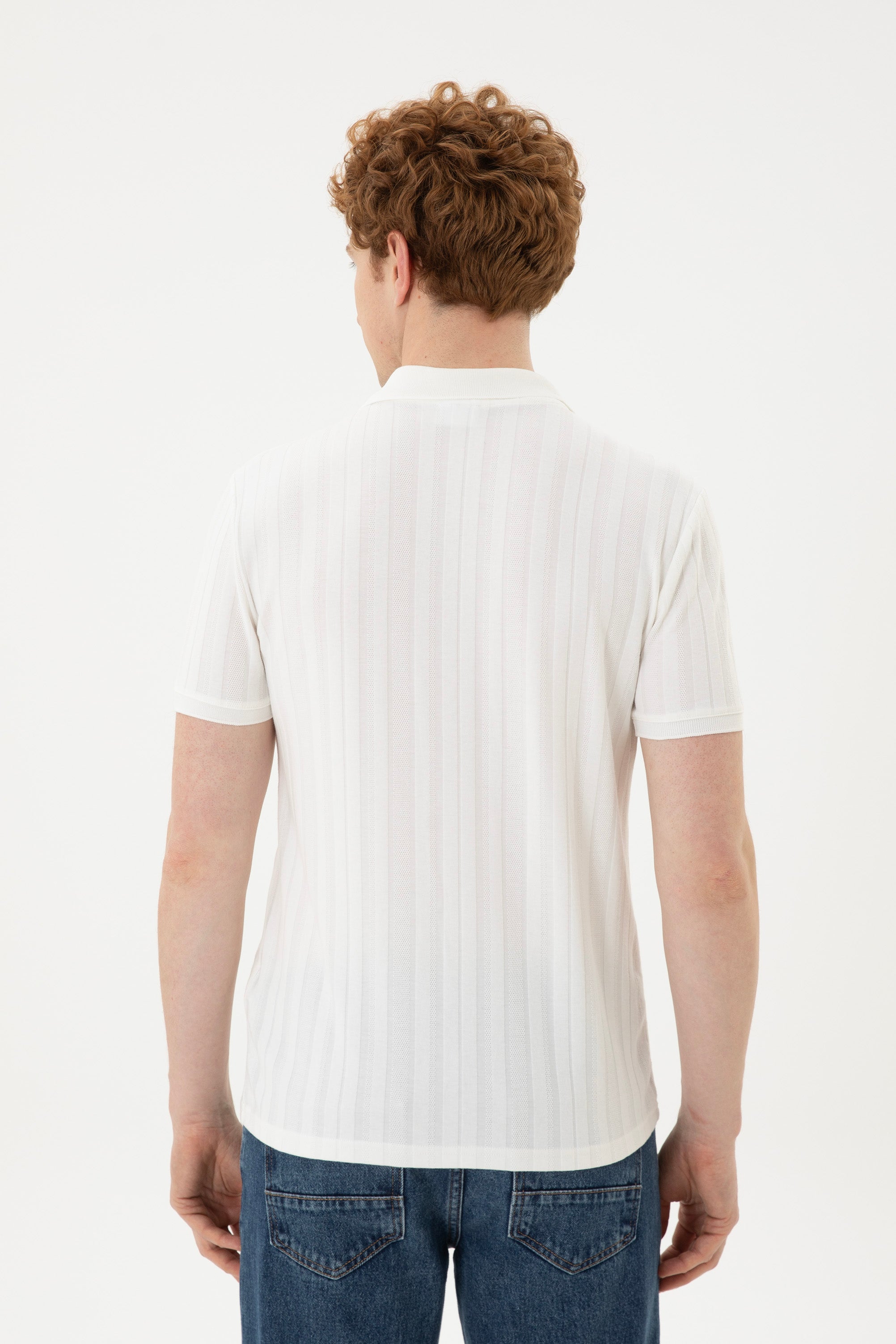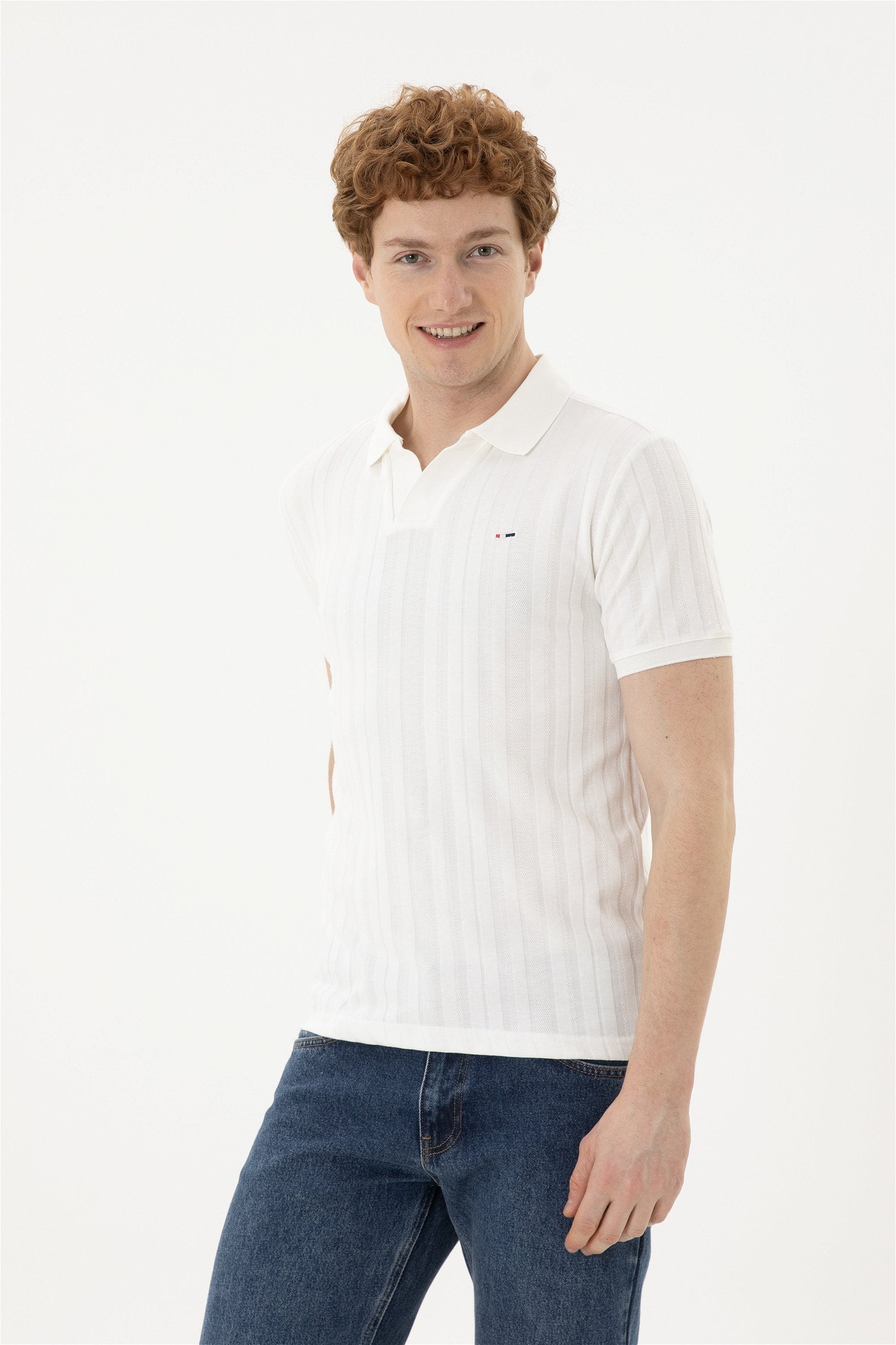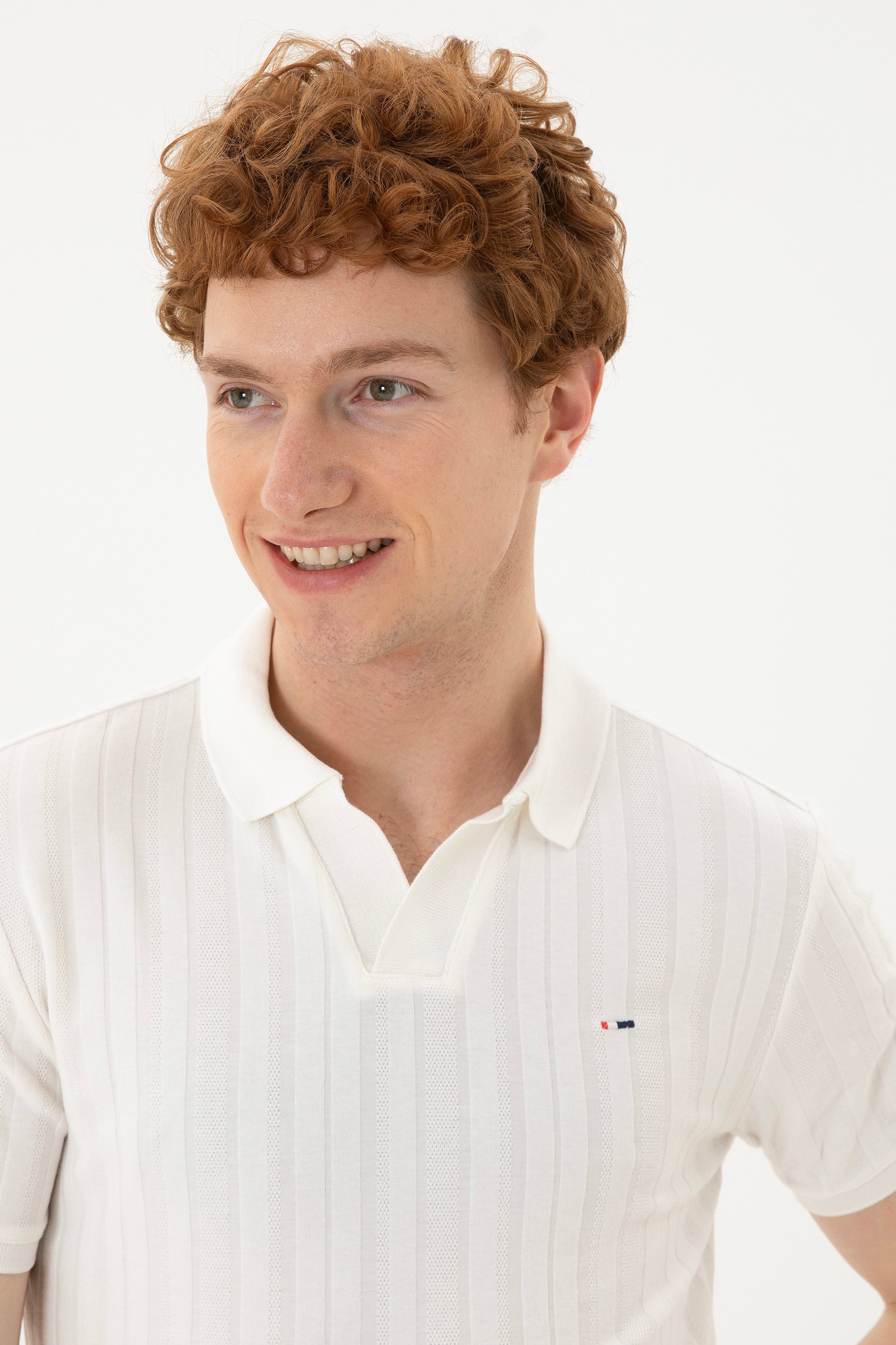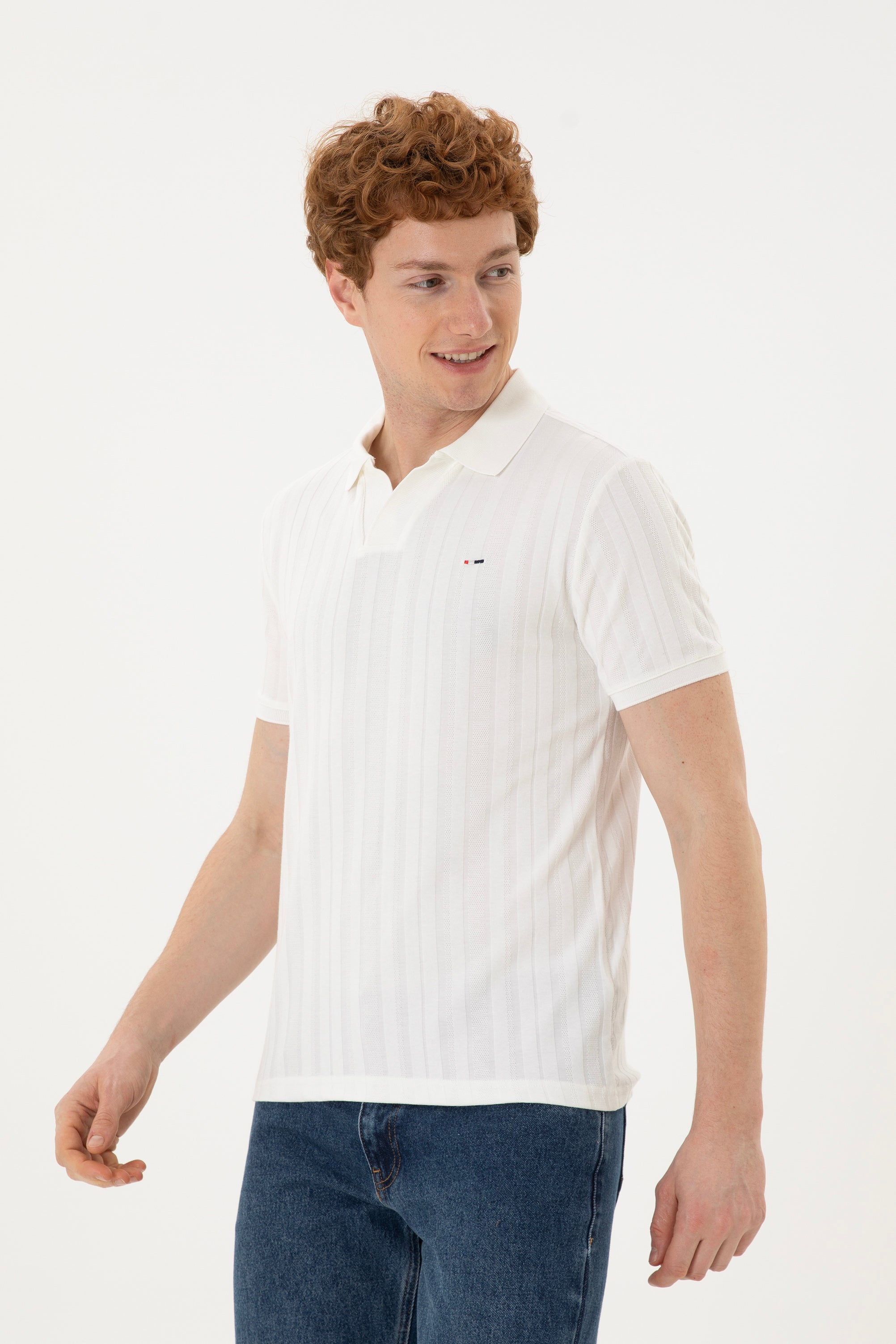 Elegantna polo majica u klasičnoj bijeloj boji pruža savršenu kombinaciju udobnosti i stila za svakodnevne prilike. Karakterizira je nježna rebrasta tekstura koja osigurava prijatno nošenje i savršeno pristajanje. Na lijevom prsnom dijelu nalazi se suptilan logo koji dodaje dašak sofisticiranosti. Ova polo majica je idealna za ležerne izlaske, odigravanje sportskih aktivnosti ili svakodnevne poslovne kombinacije, a lako se može uklopiti uz traperice, kratke hlače ili chino hlače, pružajući svestranost u svim prilikama.