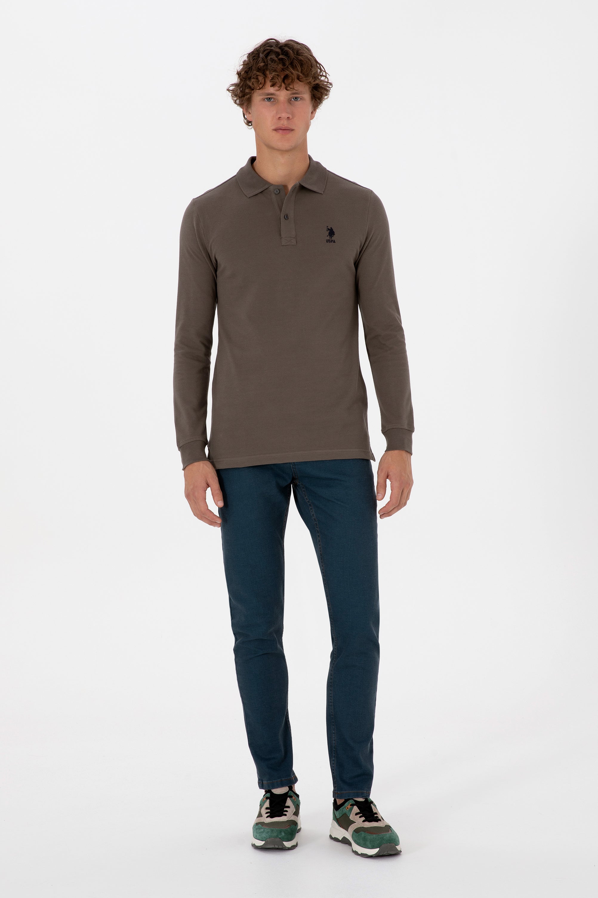 Muška Smeđa Polo Majica Dugih Rukava