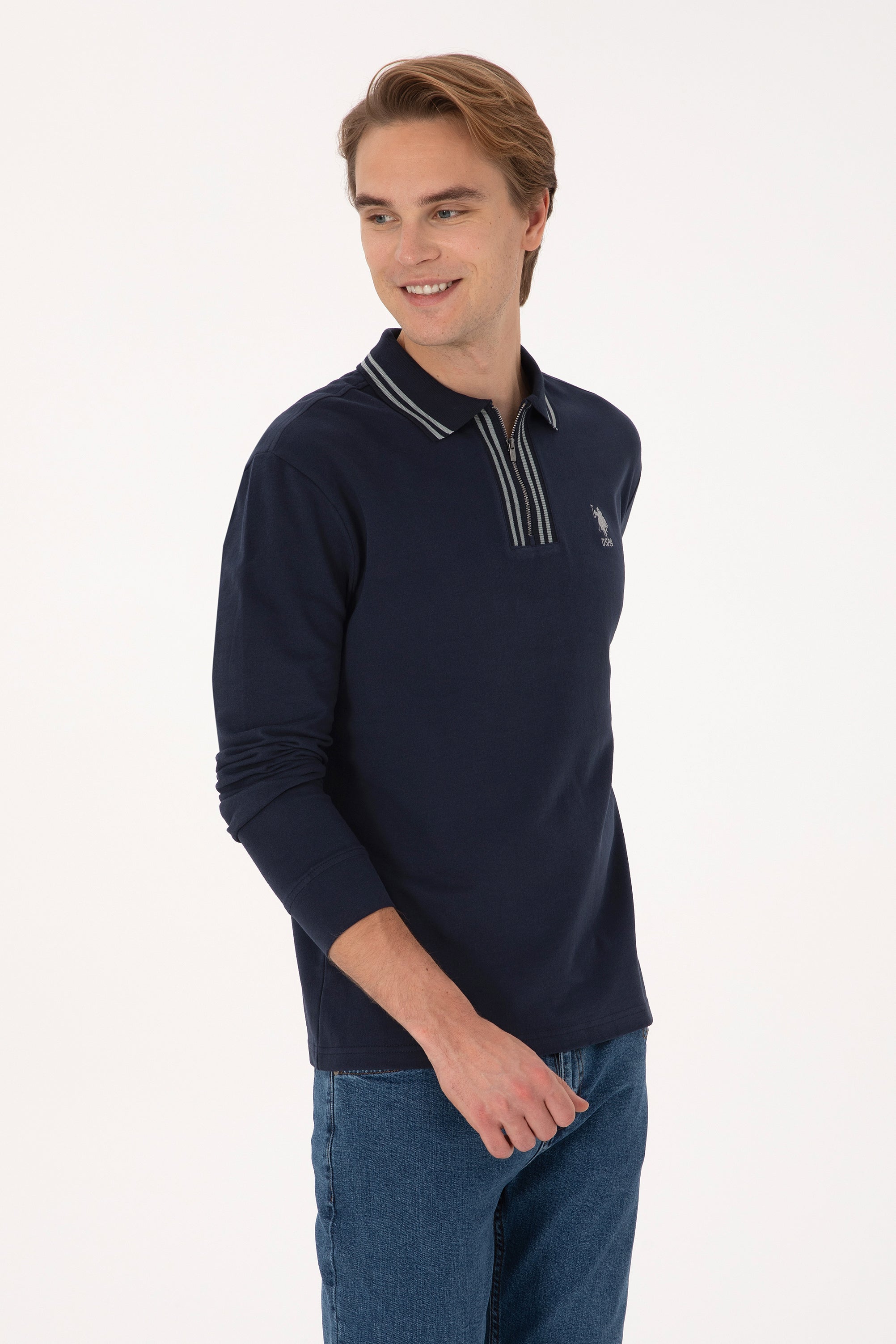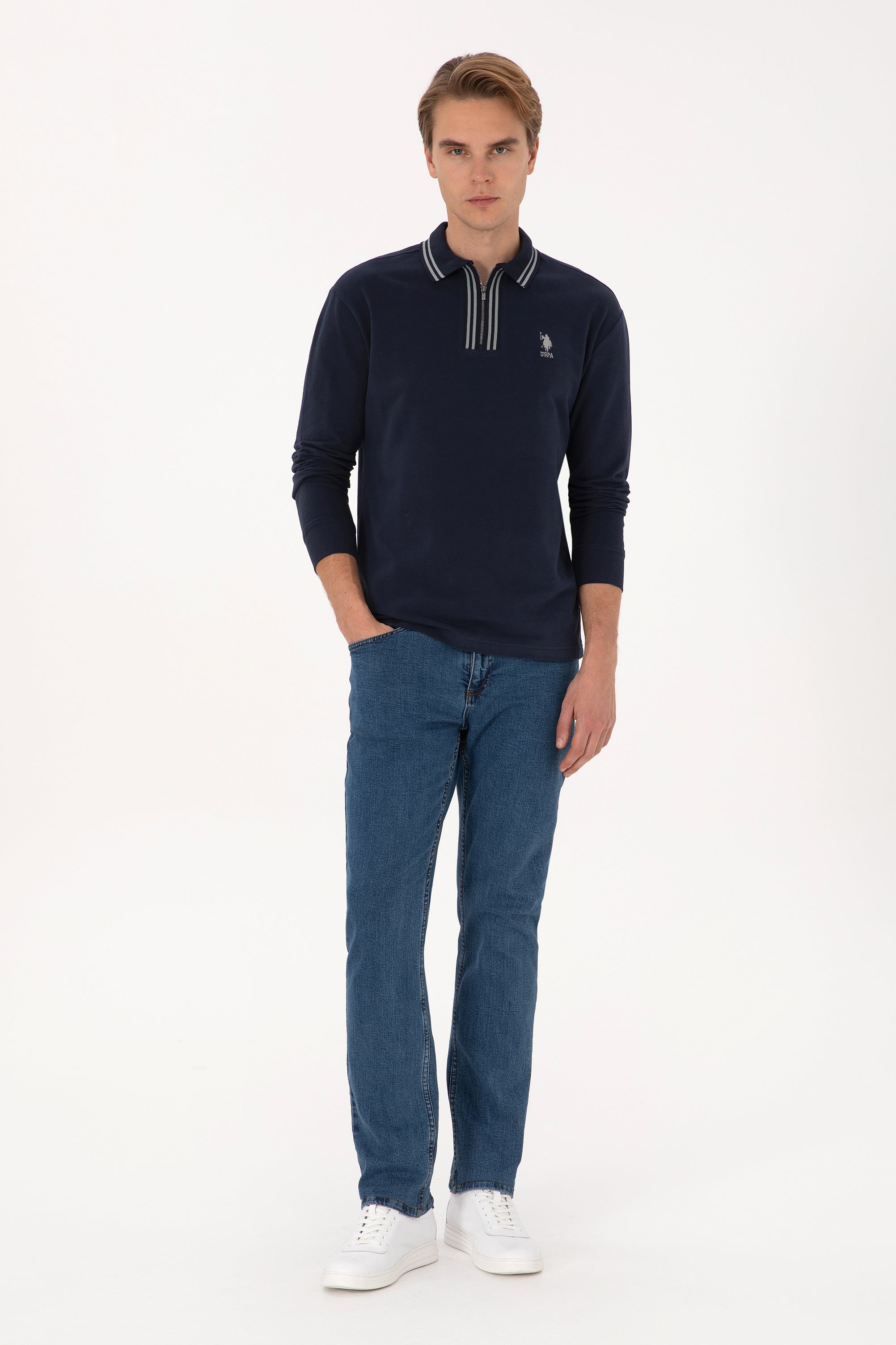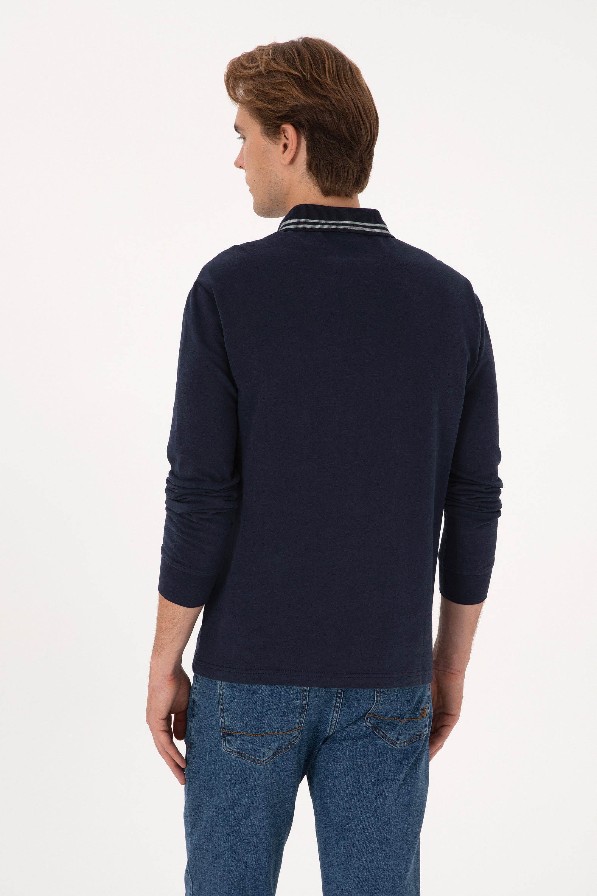 Muška Teget Plava Polo Majica Dugih Rukava