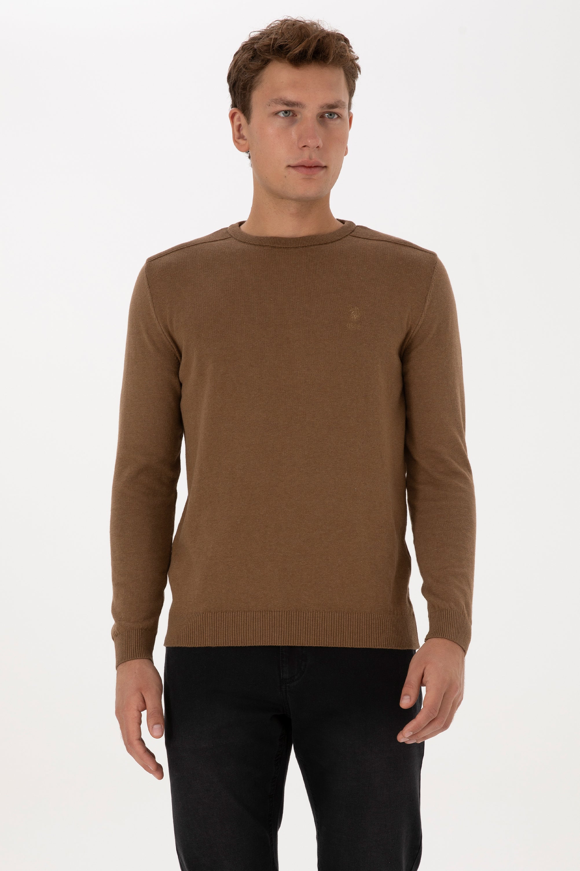 Muški Khaki Džemper Okrugli Vrat