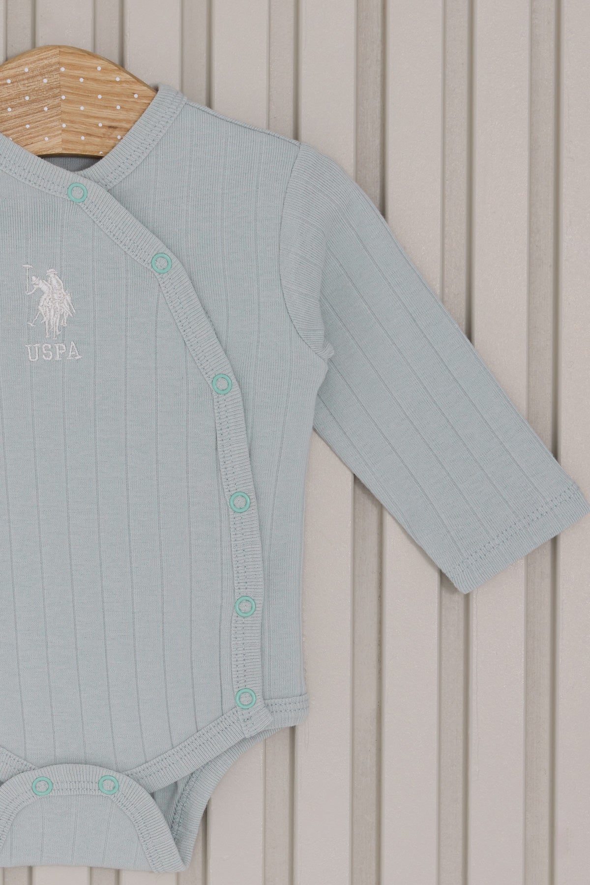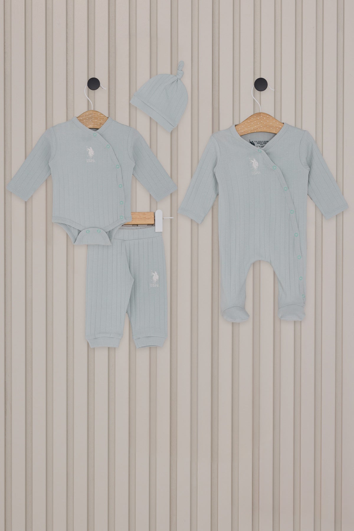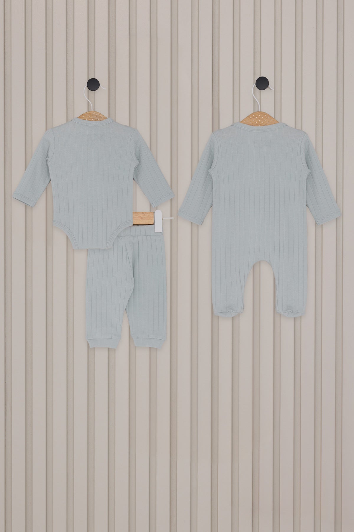 Set odjeće za bebe u nježnoj pastelno zelenoj boji donosi udobnost i stil za najmanje. Sastoji se od dugih nogavica, kombinezona sa dugmadima i šarmantne kape koja dodaje završni dodir. Mekana, rebrasta tekstura osigurava da je svaki komad prijatan za nošenje i delikatno prija bebinom izgledu. Na prednjem dijelu kombinezona nalazi se diskretan detalj koji dodatno pridonosi šarmu ovog seta. Idealno za svakodnevne prilike, ovaj set se lako može kombinovati sa drugim odjevnim predmetima, pružajući bebi slobodu kretanja i toplinu tokom hladnih dana. Uz njega, svaka beba će izgledati slatko i elegantno.