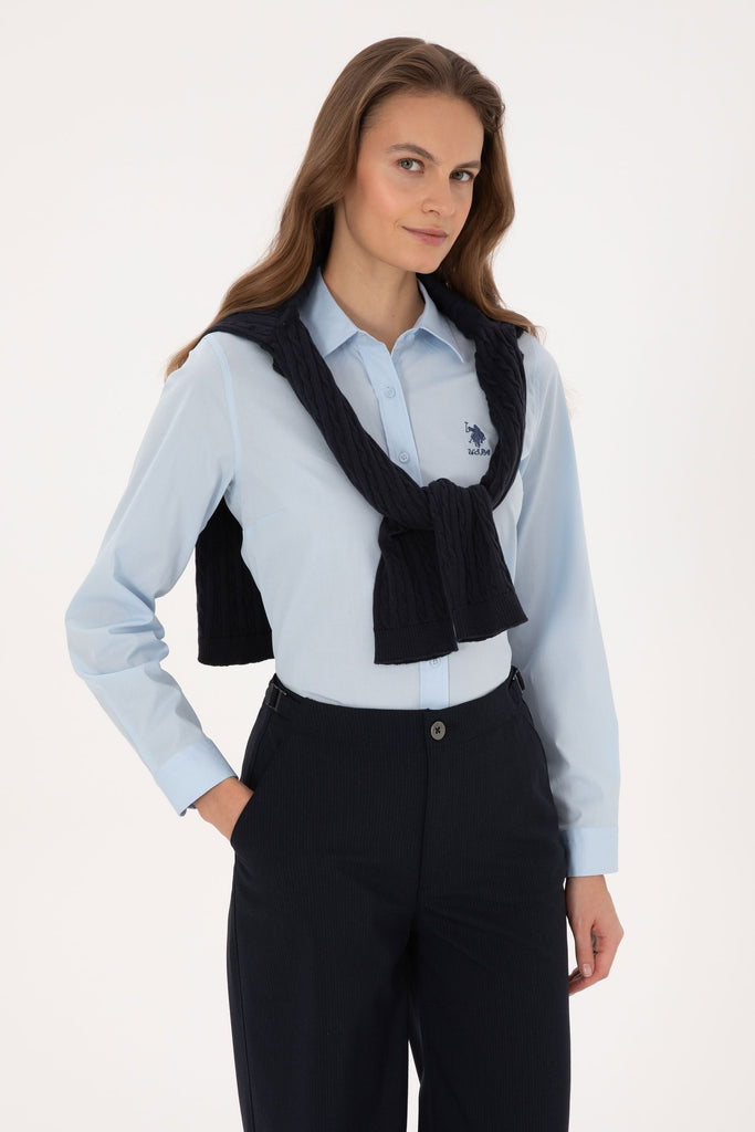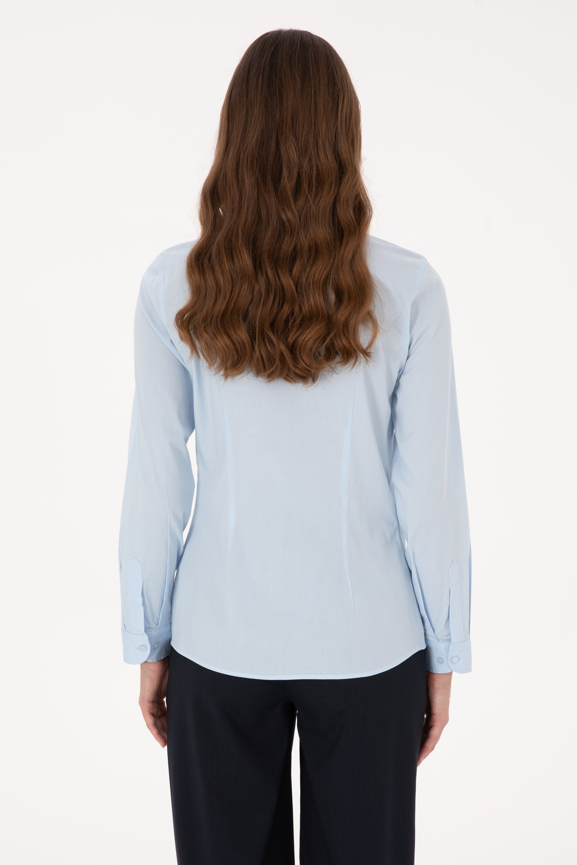 Ženska Svijetlo Plava Košulja Dugih Rukava