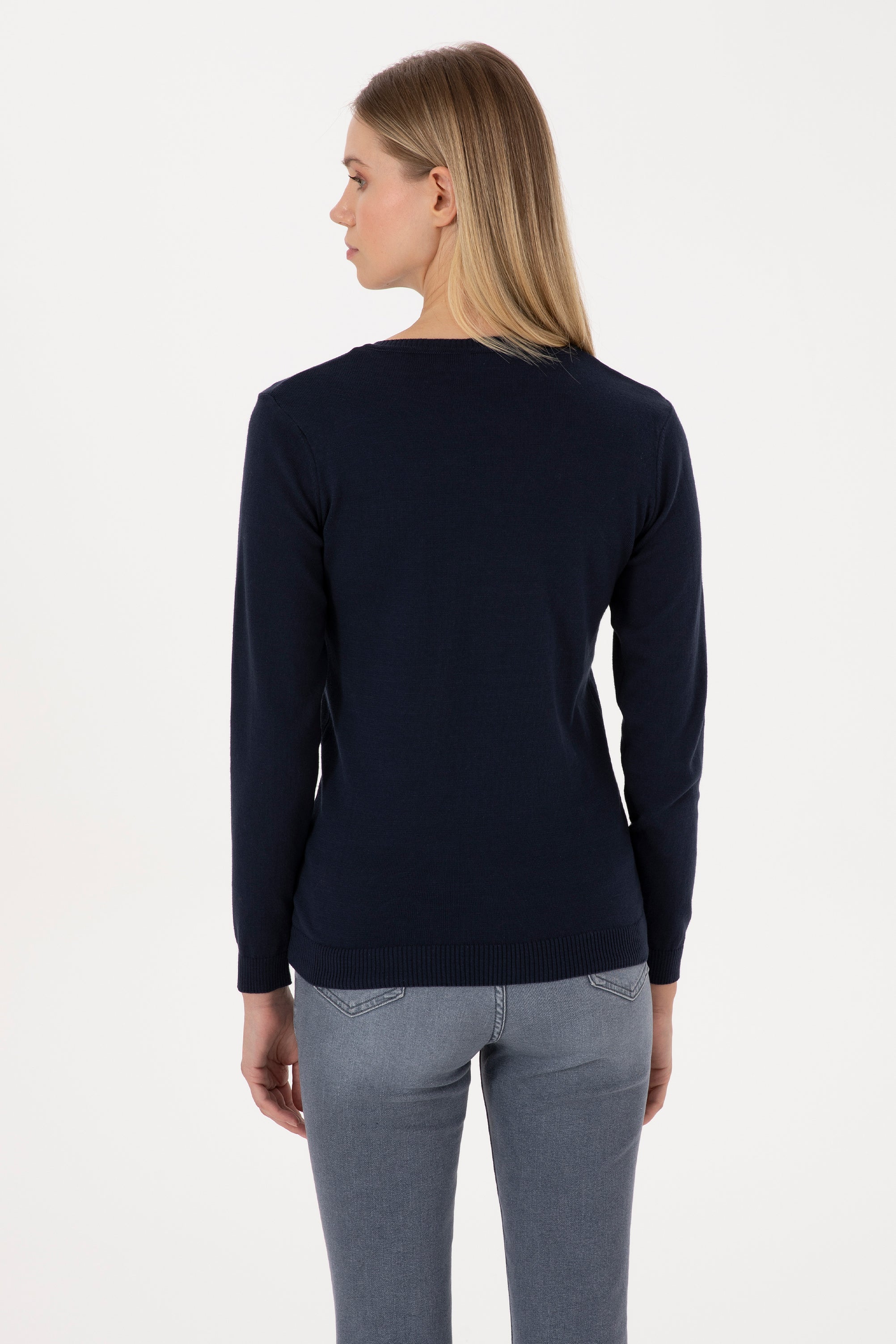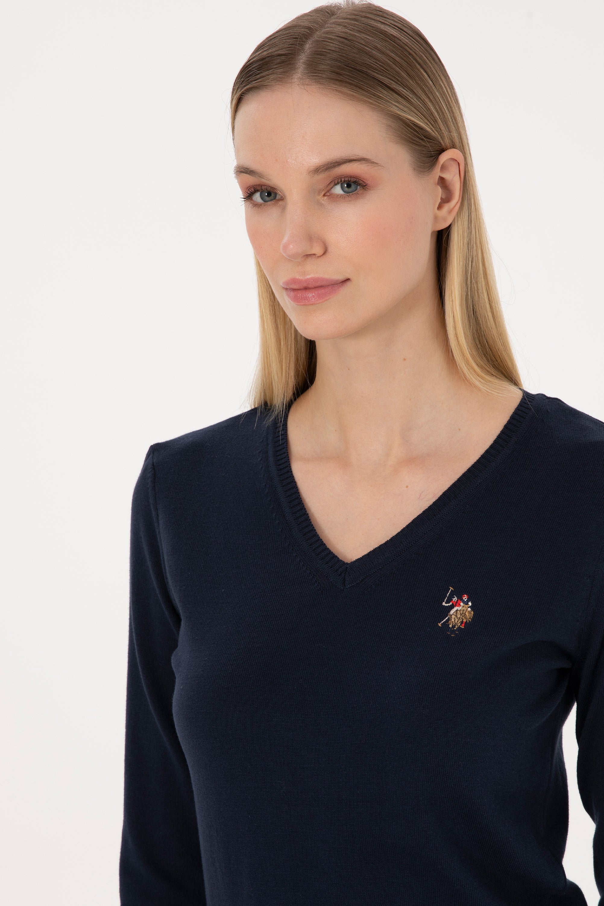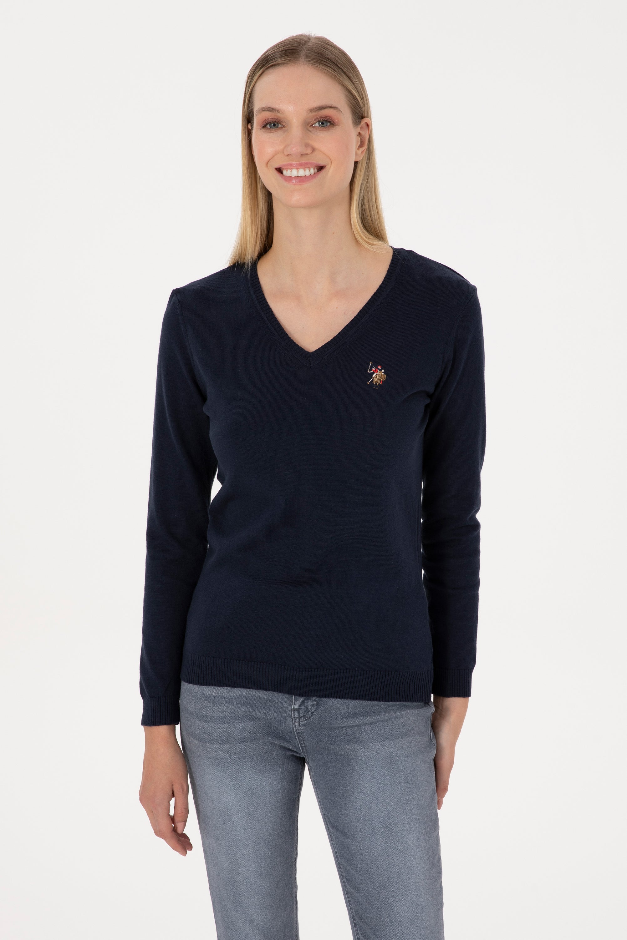 Ženski Teget Plavi Džemper Na V Izrez