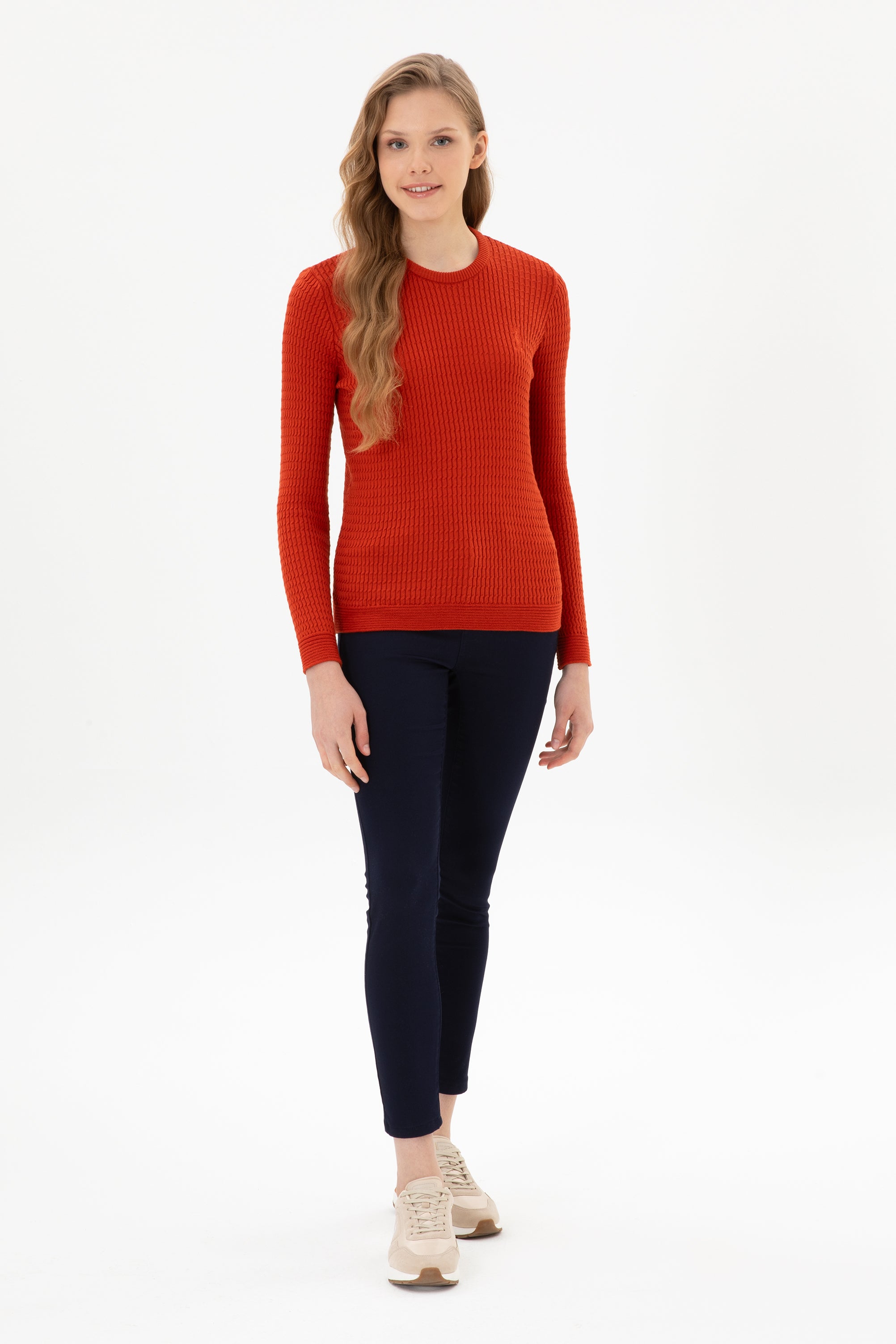 Ženski Narandžasti Džemper Okrugli Vrat