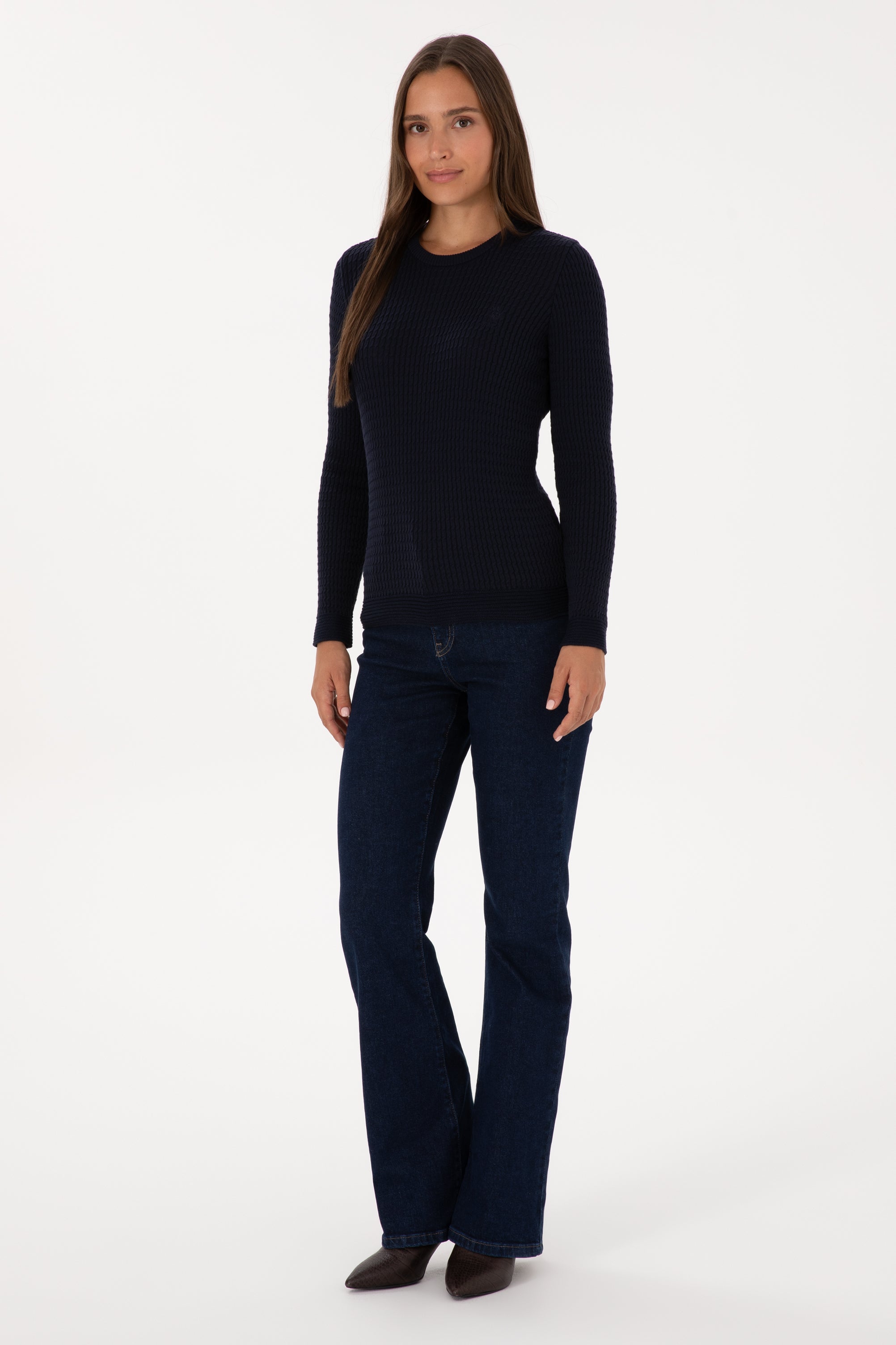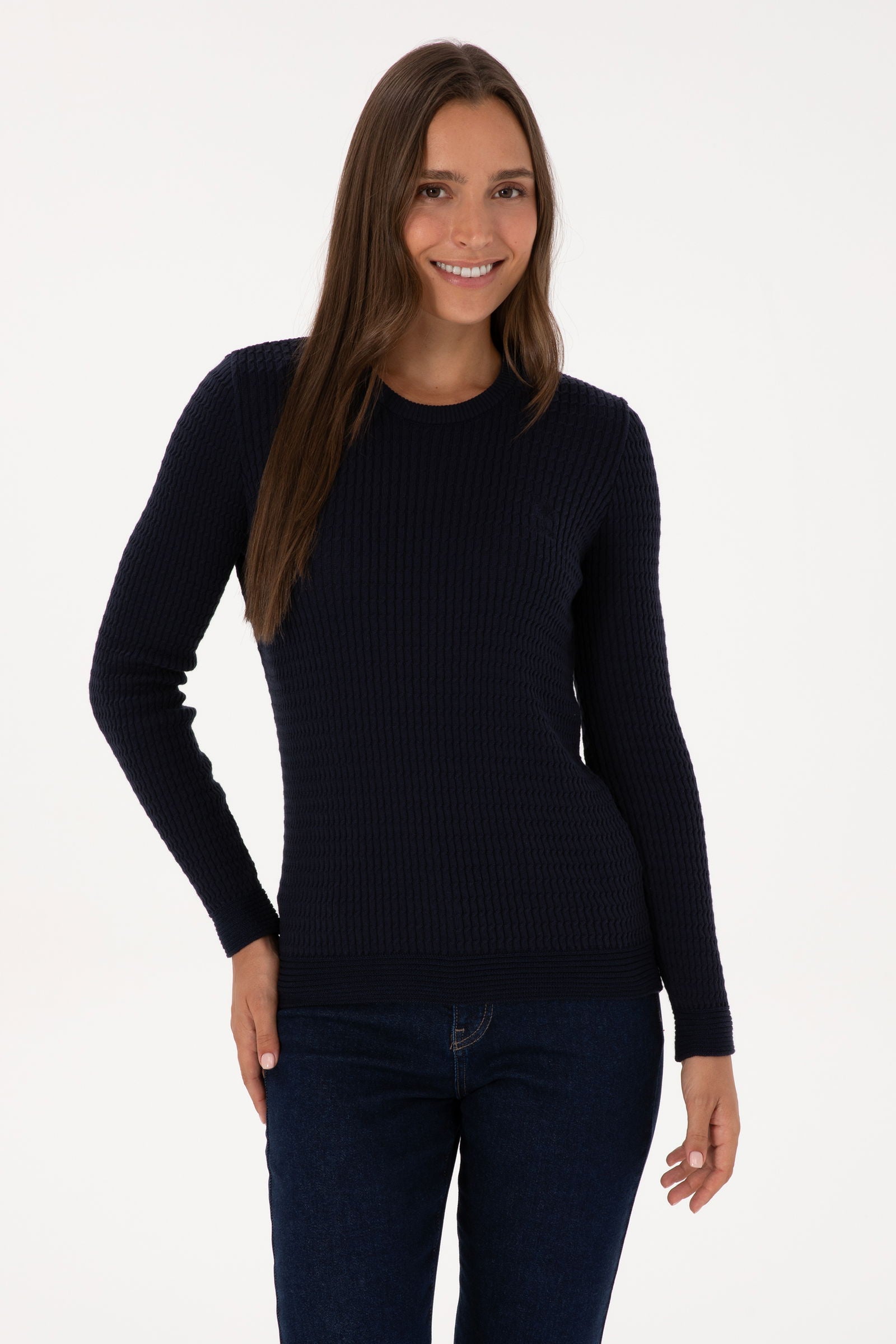 Ženski Teget Plavi Džemper Okrugli Vrat