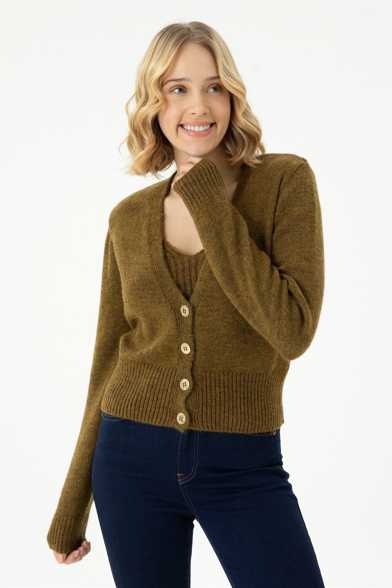 Ženski Khaki Kardigan